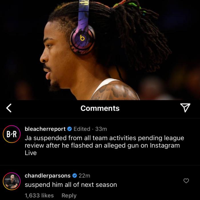 前灰熊球员钱德勒-帕森斯则在BR动态评论区写道:下赛季禁赛莫兰特一整个赛季吧。