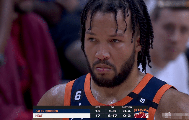 整个上半场,布伦森几乎是独力支撑着尼克斯前进。他除了拿下50中的22分之外,在场正负值是+6。原本尼克斯占据10分左右优势,但第二节还剩9分多钟时他下场休息的2分钟,尼克斯被热火连续追分。布伦森没有办法,只得重新披挂上阵。而除了布伦森之外,尼克斯其余队友26中8,对比非常鲜明。