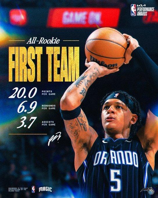 来源:JRS直播网05-09 11:35JRS直播网05月09日,NBA官方公布了本赛季的最佳新秀阵容,魔术状元保罗-班凯罗全票入选一阵,火箭探花小贾巴里-史密斯入选二阵。