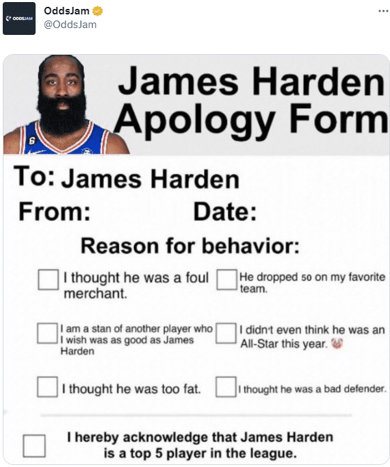 经历过G2和G3(两战28投5中)连续两场的低迷以及嘲讽,哈登G4迎来大爆发,把系列赛拖进加时赛;赛后哈登冲上推特热搜引热议,美媒晒图表示赶紧排队给哈登道歉。