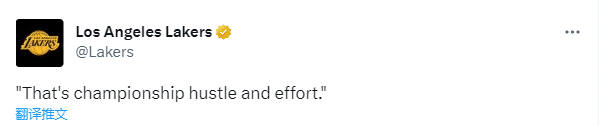 湖人官推盛赞詹姆斯冲进观众席二层看台,发推写道:这就是冠军的拼搏和努力。