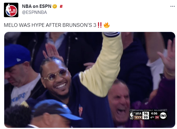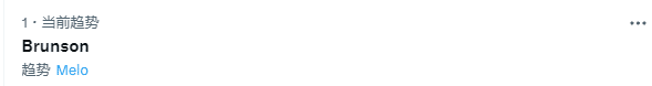 布伦森轰下30分5篮板带队扳平大比分,得分创尼克斯生涯季后赛得分新高,布伦森冲上全美推特热搜榜,安东尼的名字也上榜。