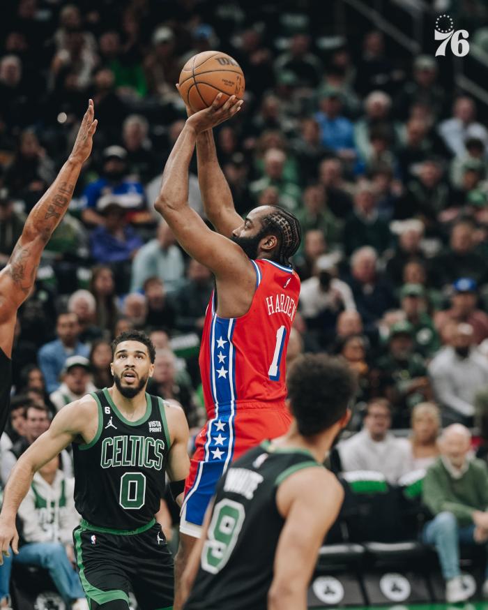 上半场,塔图姆14投11中轰下26分4篮板3照顾,杰伦-布朗7投6中拿到16分,双探花半场合砍42分,即使如此,哈登仍带队保持悬念。
