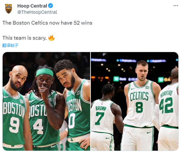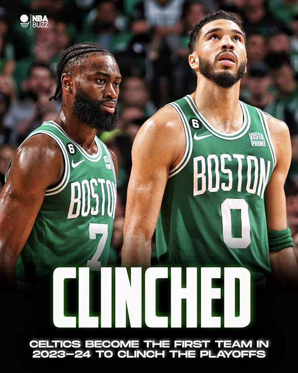 今日凯尔特人主场127-112大胜并且赛季横扫太阳,76人客场105-114不敌雄鹿并且赛季被三杀横扫,因此凯尔特人(52胜14负)成为本赛季首支锁定季后赛席位的球队,提前16轮晋级季后赛;这是他们连续第10年闯入季后赛,也是过去17年第16次进入季后赛(2013-14赛季,绿军25胜57负排名第12无缘季后赛);队史第60次晋级季后赛。
