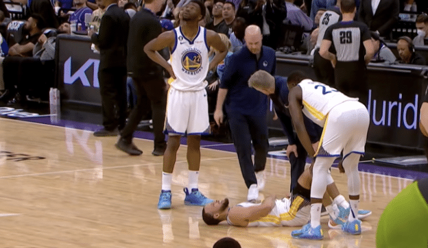 在国王得分困难、萨博尼斯两罚全丢的情况下,克莱连续命中3记三分球,率领勇士反超比分,也打停国王。追梦格林打成2+1,勇士一波12-0,领先对手5分。萨博尼斯暴扣止血,戴维恩-米切尔跳投紧咬比分差距。蒙克撞倒库里,他痛苦倒地,库里站起来和队医交流一下,裁判看了回放之后没有升级犯规。