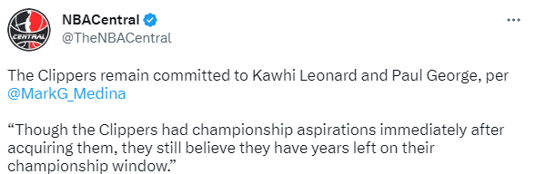不过快船仍旧相信小卡和乔治未来能带队夺得总冠军,他们相信球队还有很久的夺冠窗口期。