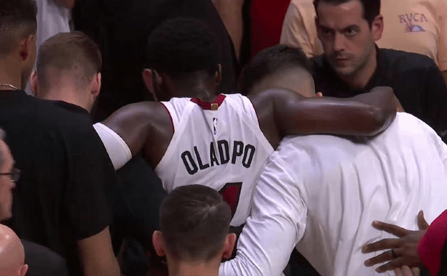 来源:JRS直播网04-25 09:10JRS直播网讯04月25日,NBA名记Shams报道,热火球星奥拉迪波左膝髌腱撕裂,在接受手术后他有望在6个月后恢复篮球活动,并在下赛季复出。对于命运多舛的奥拉迪波来说,这可以说是不幸中的万幸。而奥拉迪波本人也展示了顽强的斗志和品格,他计划继续自己的职业生涯。G4,热火全员身穿印有奥拉迪波照片的T恤。而热火主帅斯波教练在G4赛前的采访,更是令人热泪盈眶。