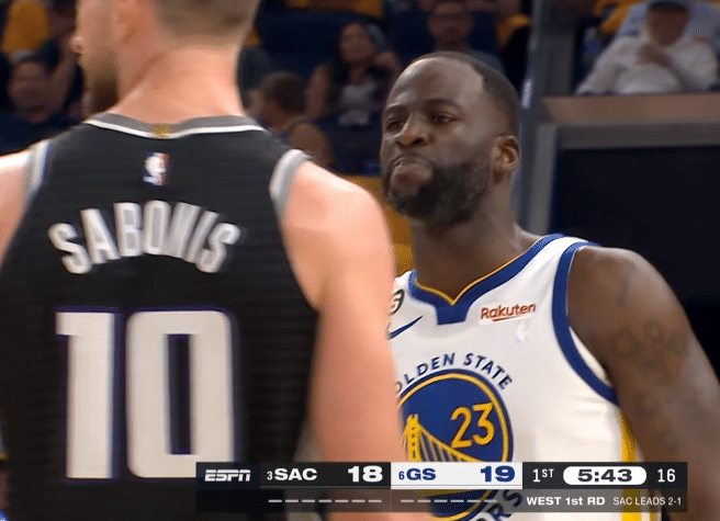 在勇士和国王系列赛G2比赛中,格林因踩踏小萨博尼斯的胸部吃到二级恶意犯规,直接被驱逐离场,之后被联盟追加禁赛一场,缺席G3关键一战;而G4一战格林解禁复出,并且接受替补出战,本赛季首次替补上场。