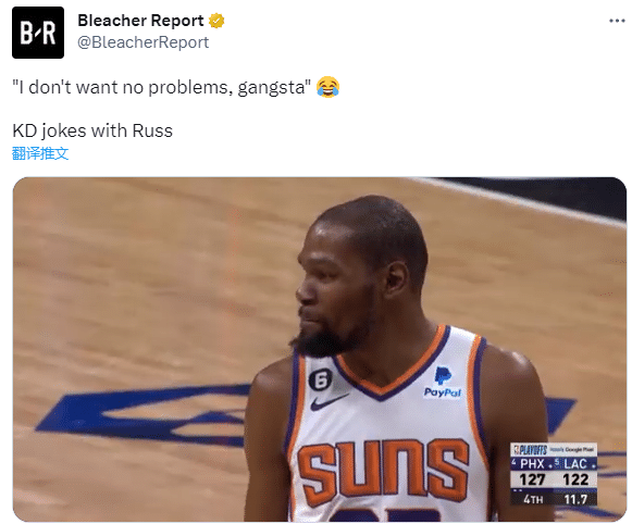 来源:JRS直播网04-21 15:22JRS直播网讯04月21日,NBA季后赛太阳G3击败快船,系列赛大比分2-1领先,布克状态火热,29投18中、三分7中3轰下45分7篮板3助攻3抢断2盖帽,攻防一体,关键2+1太蛮横;杜兰特15投8中贡献28分6篮板5助攻2抢断,关键时刻连续四罚锁定胜局,比赛期间杜兰特被冤枉一幕曝光,识破威少“诡计”猛缩手却难逃一劫;最后时刻杜兰特被凶狠撞倒后,KD冲威少开玩笑:我不想惹麻烦 地痞。