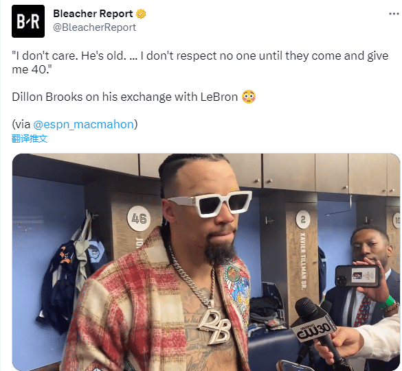 来源:JRS直播网04-20 15:31JRS直播网04月20日,NBA季后赛灰熊G2击败湖人,把系列赛大比分扳成1-1,灰熊悍将狄龙在比赛中两次挑衅詹姆斯,激烈互喷打出火药味,赛后狄龙回应:我不在乎,他太老了。
