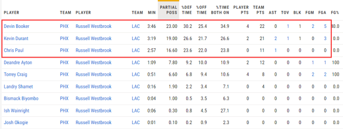来源:JRS直播网04-18 09:40JRS直播网04月18日,快船和太阳系列赛G1,威少防守太阳三巨头的数据出炉,据统计,威少防守杜兰特、布克和保罗59个回合,仅仅让他们拿到6分,BCD投篮命中率仅仅只有25%。