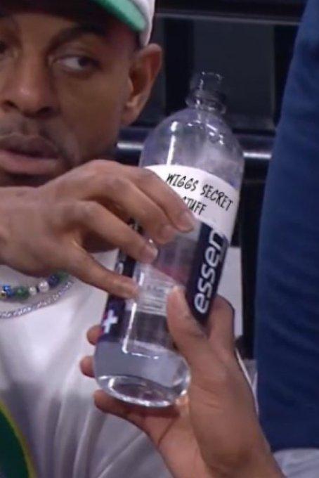 维金斯复出首战状态好的原因曝光?伊戈达拉拿着一瓶水,上面写着:维金斯秘密水。