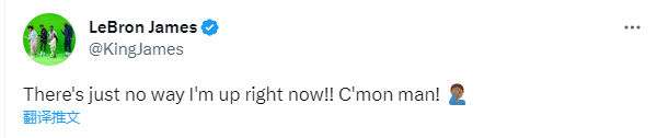 湖人晋级季后赛后全队放假一天,当地时间早上6点,詹姆斯发推写道:这个点我醒了,不可能啊!拜托!