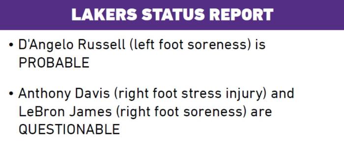 湖人官宣战太阳伤情:詹皇浓眉成疑拉塞尔大概率出战 杜兰特等或轮休