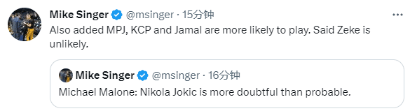 官宣约基奇因伤缺战勇士!马龙回应:伤势好些前我不想让他出场