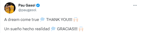 湖人官方祝贺加索尔,恭喜两届总冠军和湖人传奇入选名人堂,他的球衣永远悬挂在了球馆上空,现在他又迈向了名人堂;公牛和马刺官方也祝贺加索尔。