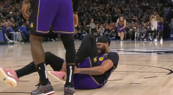 湖人惊魂一幕:浓眉崴脚倒地不起 一瘸一拐带伤坚持为季后赛太拼