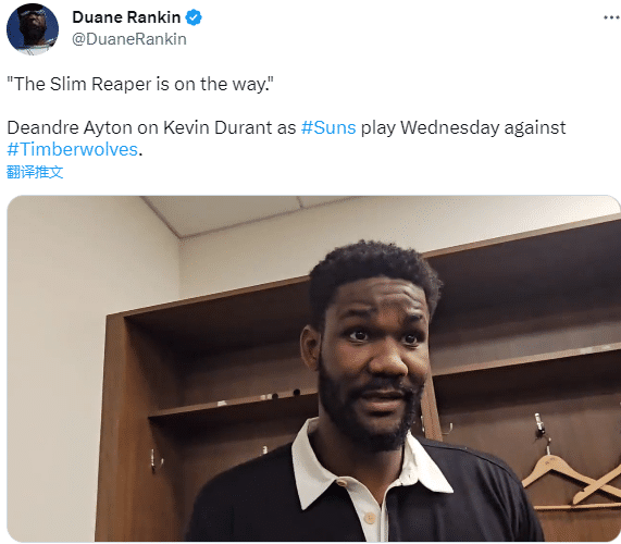 来源:JRS直播网03-28 14:16JRS直播网讯03月28日,太阳球星杜兰特复出倒计时,预计本周四复出战森林狼,太阳将帅回应KD即将回归,布克期待再次与杜兰特联手;艾顿直言:死神已经在路上。