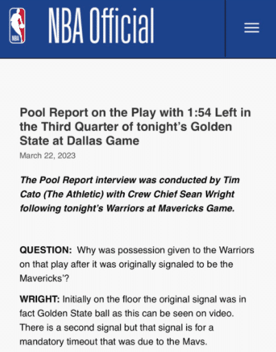 赛后裁判解释勇士5打0争议一幕,裁判Wright回答:那个球在场上最初的判罚就是勇士的球,这个可以在视频上看到。当时确实有第二个手势,但那个手势是强制暂停扣在独行侠身上的意思。
