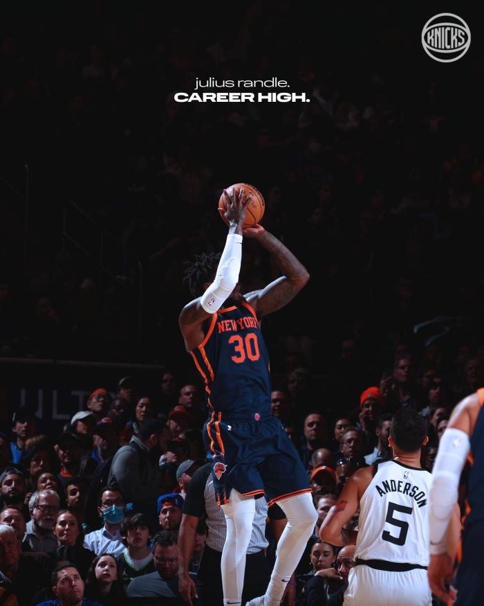 2、兰德尔得分创赛季新高,也是职业生涯新高