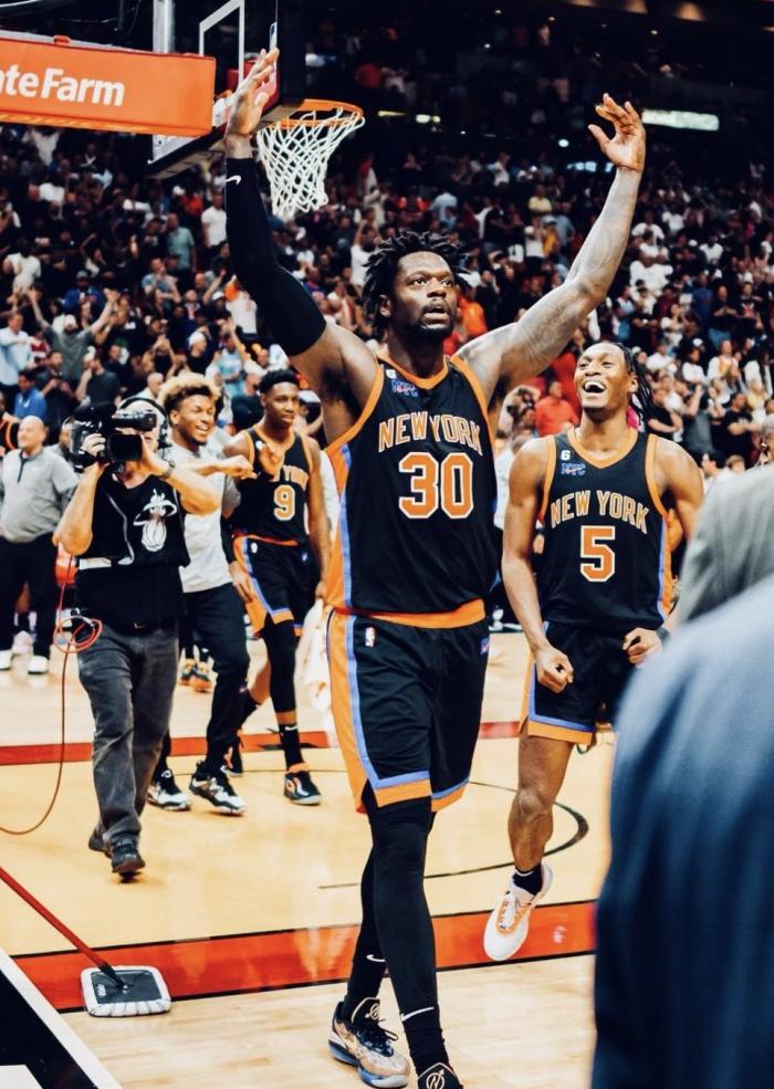 面对森林狼,兰德尔第一节打满12分钟并且状态火热,单节8投4中独砍13分,杀到篮下霸气隔扣2+1;第二节,兰德尔的状态依旧,单节又拿到13分,半场贡献26分,不过尼克斯半场70-79落后9分。