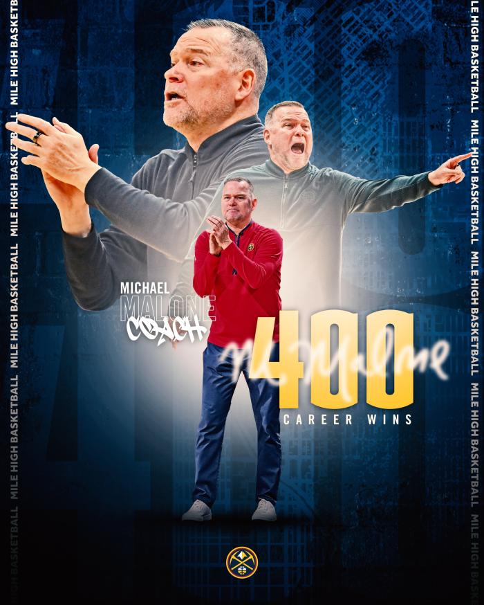 赢球后掘金47胜23负继续排在西部第一,领先西部第7的森林狼(35胜35负)多达12个胜场,提前12轮锁定西北区常规赛冠军和季后赛,掘金官方晒图庆祝;与此同时,掘金主帅迈克-马龙取得执教生涯第400场胜利,迎来执教里程碑。