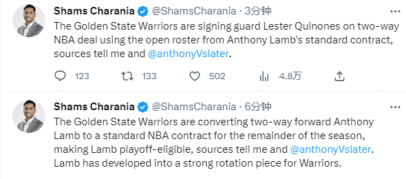勇士连续签约!兰姆终于转正获征战季后赛资格 队记确认下一场复出