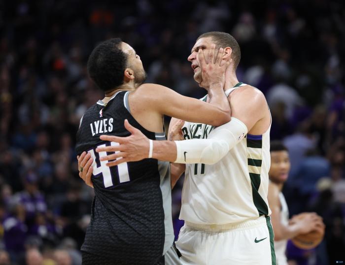 在雄鹿和国王比赛最后时刻,比赛已经失去悬念,字母哥运球时被莱尔斯从背后推了一把,大洛佩兹为字母哥出头,上前理论,随后大洛和莱尔斯发生火爆冲突,冲突时莱尔斯先是打到大洛的面部,抠眼还掐住大洛的脖子,两人扭打在一起,小萨博尼斯、福克斯以及霍乐迪等人球员以及裁判赶紧拉架,场面十分混乱,大洛头部被打出血,骂骂咧咧坐回替补席接受治疗。