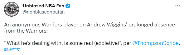 来源:JRS直播网03-16 14:07JRS直播网03月16日讯 ,据美媒NBA Central报道,维金斯本赛季可能不会回归,对此勇士总经理辟谣,并且拒绝透露嘴哥的隐私;究竟维金斯怎么了?勇士匿名球员透露维金斯正在处理一些真正的咒骂,勇士内部都理解且没人抱怨维金斯,全队都没有对他的离队感到不满。