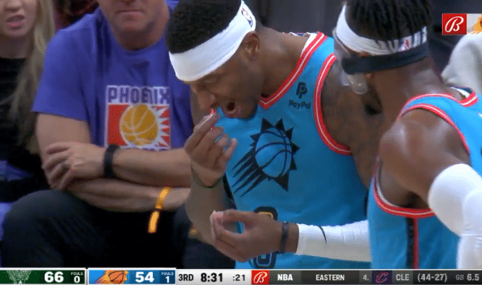 字母哥铁肘太狠:打掉对手牙齿引热议 两队打出火药味布克狂喷泄愤