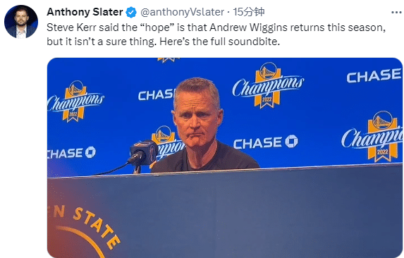 维金斯或本赛季不会回归!科尔坦言家事重于篮球 更新库明加脚踝伤情