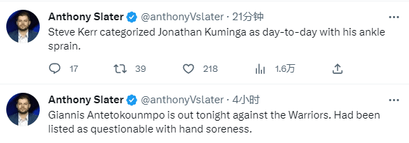 据科尔透露,库明加因脚踝伤势被列入球队每日观察名单,这说明库明加的伤势并没有杜兰特的那么严重,今天不会出战与雄鹿的比赛。