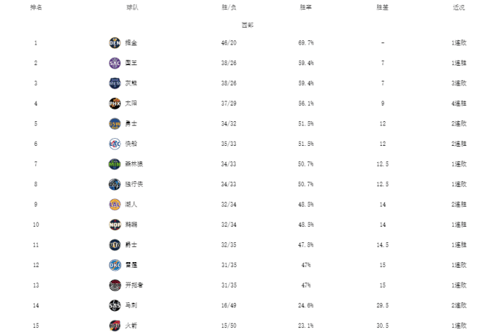 这样西部对于附加赛的争夺依旧很激烈,目前湖人和鹈鹕排名第九和第十名,处于附加赛的区域,他们的战绩都是32胜34负。但身后的球队距离他们的差距很小,爵士在结束4连败之后战绩来到32胜35负,距离第九的湖人之间只有0.5个胜场的差距。同时雷霆和开拓者距离湖人也只相差1个胜场,所以说一场比赛的胜负,就有可能让西部的格局发生很大的变化。