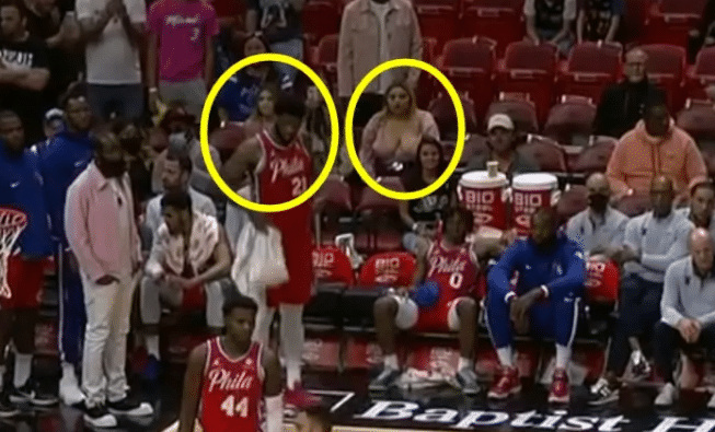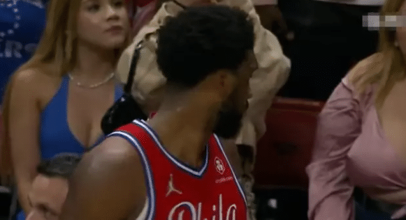 同时恩比德也曾经盯着偷看,虽然场外的恩比德很喜欢撒狗粮。