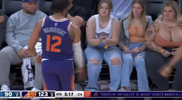 这场比赛太阳的球迷们虽然没有能够看到杜兰特在主场的首秀,但起码见证了一场大胜,球队继续冲击西部第二名。同时这场比赛期间,一名女球迷火了,这是太阳队的球迷,几名美女球迷坐在一起,其中一位特别抢镜,胸怀宽广。