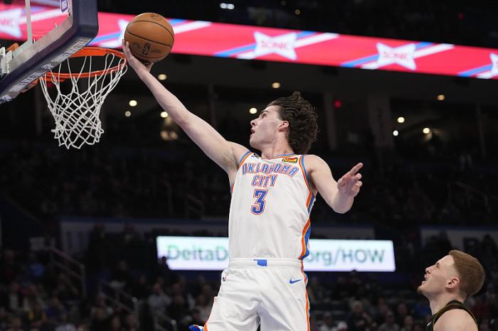 这个球员就是吉迪,吉迪此战11中6(三分4中1),4罚4中,砍下了17分11板17助攻的三双,在他的妙传下雷霆7人得分上双。此战达成三双后,20岁149天的吉迪7次达成三双,追平魔术师,并列为NBA史上不到21岁三双次数第二多(第一是东契奇的21次)。吉迪离21岁还有不少时间,他超越魔术师,独享第二应该大有希望。