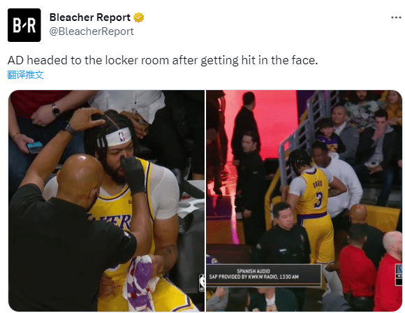 浓眉30+22统治比赛:血洒赛场仍坚持太拼 湖人正式升到西部第9