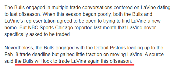 据公牛随队记者K.C. Johnson报道,公牛将在今年休赛期再次交易拉文。
