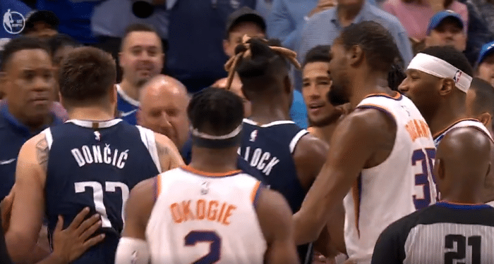 东契奇和布克互喷笑场:名记揭秘冲突原因 杜兰特劝架也跟着笑了