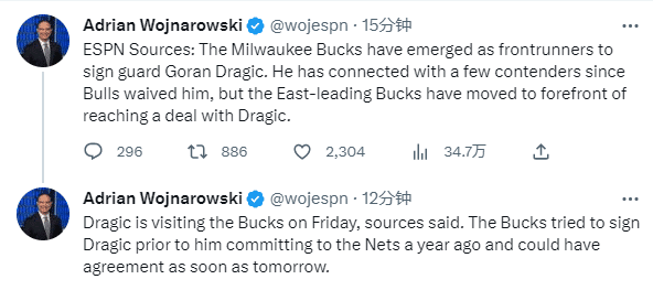 1年前,雄鹿曾想引援德拉季奇,但后者最终加盟篮网,如今德拉季奇被裁成为自由球员,雄鹿再次追求德拉季奇,双方有望明天签约。
