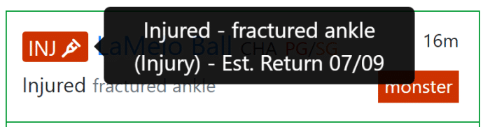 经过X光检查,三球的伤势确诊为右脚踝骨折,据报道,脚踝骨折预计至少休战4个月,预计要到7月9日才能复出,换言之,三球因伤提前赛季报销。