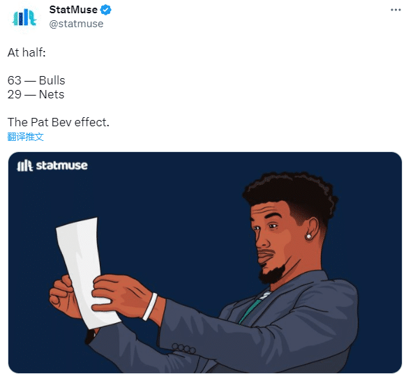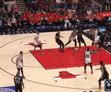 下半场,贝弗利第三节快速长传,卡鲁索反击大踏步上篮得分,两大湖人旧将连线,进攻端,贝弗利造犯规两罚全中,公牛继续扩大领先,单节34-22又赢12分,三节打完公牛已经领先46分,篮网全队三节仅仅拿到51分。
