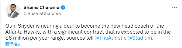 斯奈德接近成为老鹰新帅:年薪约800万美元 将执教杨冲击季后赛