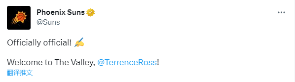 32岁的特伦斯-罗斯和魔术达成买断协议,之后引多队争抢,据此前报道,罗斯曾口头承诺加盟独行侠,可最终在太阳老板和主帅的招募下,罗斯决定加盟太阳,助杜兰特、保罗、布克和艾顿冲击总冠军。