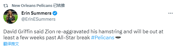 来源:JRS直播网02-13 15:30JRS直播网02月13日,鹈鹕官方宣布,球队总裁大卫-格里芬公布锡安的最新伤情,锡安的腿筋伤势加重,他将在全明星周末后继续缺席数周,并将在全明星后接受重新评估;赛季至今,锡安仅出战29场却已缺席28场比赛,腿筋拉伤后已连缺20场,彻底沦为玻璃人。