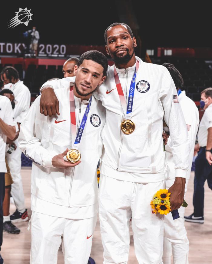 杜兰特空降加盟,太阳队欣喜若狂,今日太阳官方连续更新数条动态,其中有杜兰特、布克、保罗和艾顿四巨头的合影P照,还晒出美国队期间,保罗和杜兰特同框交流,他们在看什么呢?太阳P上凯文-杜兰特是一名太阳球员。