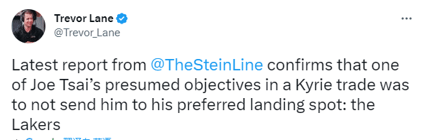 据最新报道,篮网老板蔡崇信拒绝在交易中把欧文送到他想去的首选下家——湖人;换言之,蔡老板不想让欧文如愿加盟湖人联手詹姆斯,这也是湖人追求欧文失败的原因。