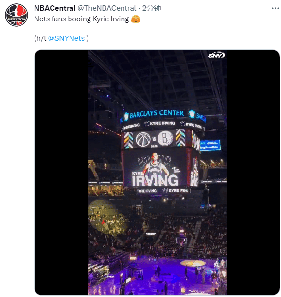 来源:JRS直播网02-05 18:04JRS直播网02月05日讯 ,欧文申请离队引热议,今天主场对阵奇才,欧文因小腿酸痛缺席比赛,赛前篮网在主场大屏幕上介绍欧文时,巴克莱中心球馆的篮网球迷狂嘘他。