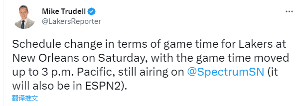 NBA官方宣布,原定于北京时间2月5日上午9点开始的湖人对阵鹈鹕的比赛将提前两个小时进行,并进行全美直播。
