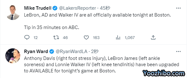 湖人官宣詹眉出战绿军:詹姆斯入场遭狂嘘 浓眉继续替补沃克复出驰援